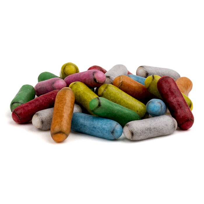 suiker, bruine suikerstroop, glucosestroop, tarwemeel, zetmeel, zoethoutextract, aroma, kookzout, gelatine, vruchten- en plantenconcentraten (saffloer, wortel, spirulina, citroen, hibiscus, appel), voedingszuur (citroenzuur), glansmiddel (bijenwas wit en geel, carnaubawas)